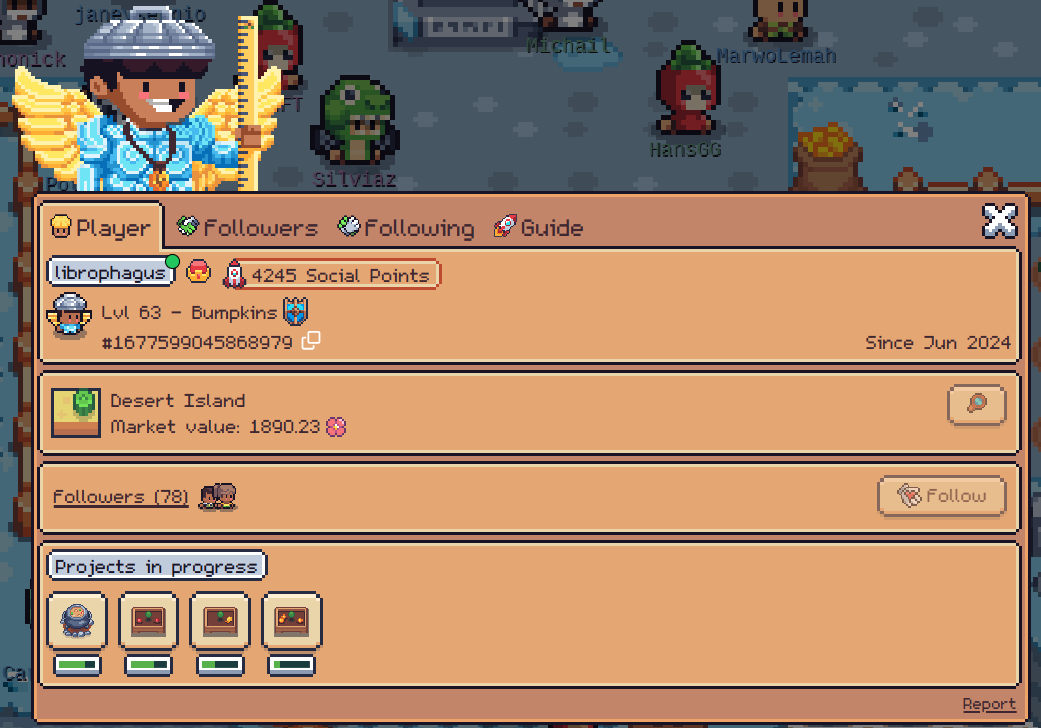 While it isn't strictly necessary to Follow another player, it makes helping them regularly much easier. If you already have some friends or Faction comrades that you've talked to on Discord, the SFL.World Telegram group, or another network, you can use "Search players" in the social menu to find another player by username.