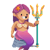 Corale is a mermaid that resides in the lower-left corner of the Beach zone. She will request any kind of fish for a delivery, in exchange for Coins. The amount of coins can be doubled by taking the skill Fishy Fortune. From her quotes, it's clear that she releases the fish back into the water and does not eat them.