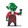 Grimtooth's quotes imply that he is using the delivered food as components for magical spells, similar to Raven. The hammer that he carries may be a magical device used to construct arcane items, rather than buildings. This helps explain why he periodically requests flowers, although other goblins have been known to eat them…
