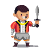 He is the favored prince of the realm, though his relationship to the reigning monarch Victoria is not clear. He would be in the Kingdom, away from the common folk, if it weren't for the treasure chest just below him. He's unable to resist the lure of the gold that might be lurking inside.